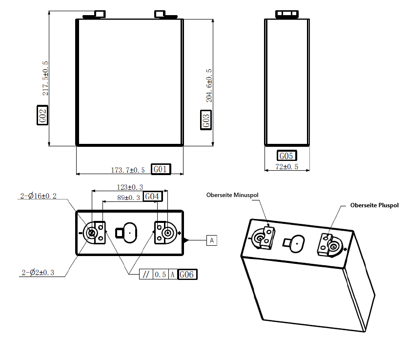 | AC Innenwiderstand | ≤ 0,25 mΩ bei 1 kHz |